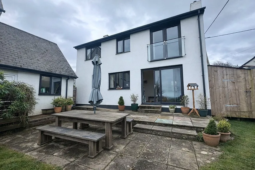 - Rear patio and lawned garden.